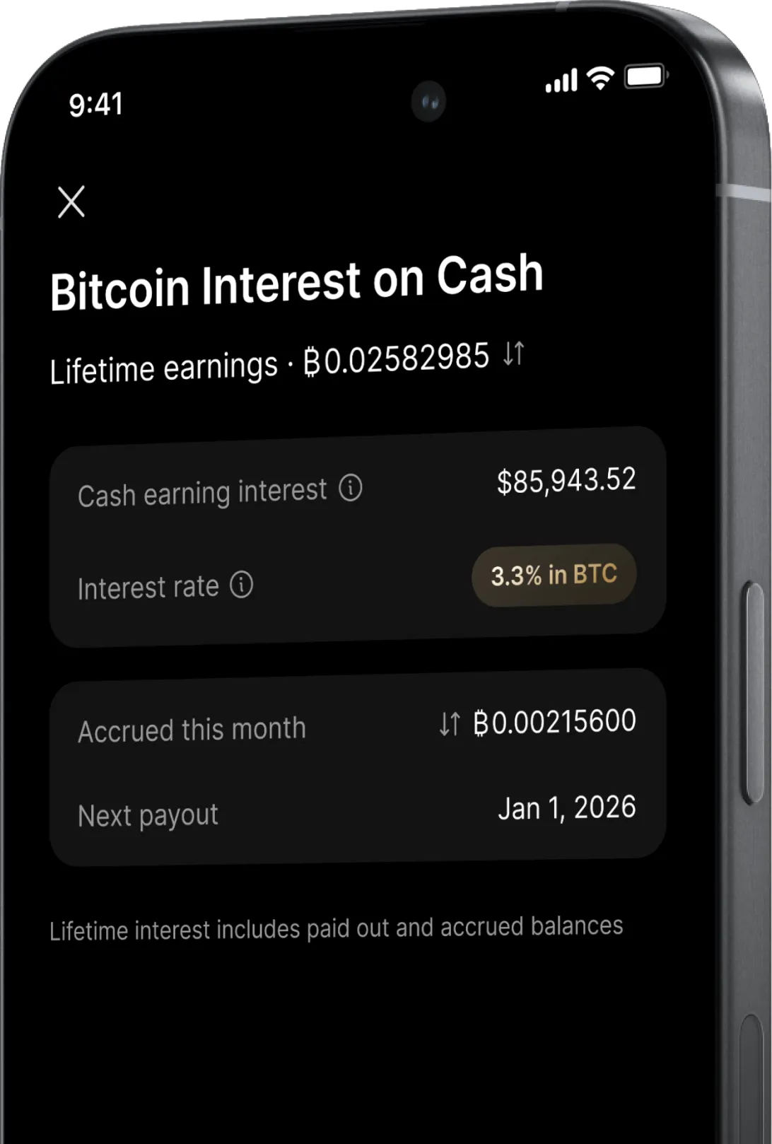 Earn 3.3% interest on cash. Paid in Bitcoin.